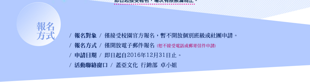 - 報名E-MAIL:monet@gaeabooks.com.tw